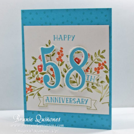 Have you ever seen a 58th anniversary card in the store? Probably not, but with the Numbers of Years and Large Numbers Framelits Die you can make your own numbered card. That’s exactly what I did and and made this card for my parents who just celebrated their 58th anniversary last weekend. This set has the numbers, the occasions and also a nice floral image …