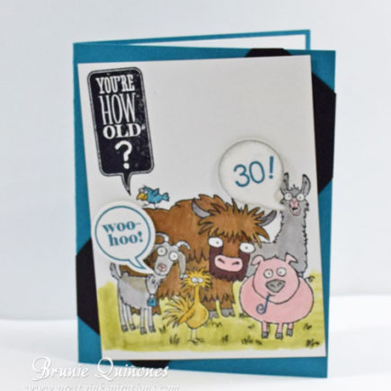 Time does fly, doesn’t it? My son and nephew were born 2 weeks apart and turned 30 this month – it’s hard to believe! Here’s the card I made for my nephew using the stamp sets From the Herd, Just Sayin’ and Back to Basics Alphabet including the Word Bubble Framelits. I think the look on the animals’ faces are great–too good to pass up. These stamps …