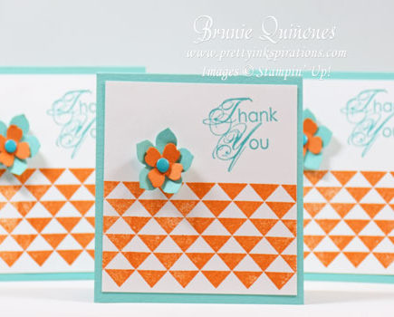 Today’s card is a 3″ x 3″ thank you using the new Dotty Angles Photopolymer stamp. There are 2 stamps in this set (see the other one below). Not only are they great for cards but also for decorating gift packaging. This is a quick and easy card. Only 2 images and a couple of embellishments using the Petite Petal Punch, the flower from the …