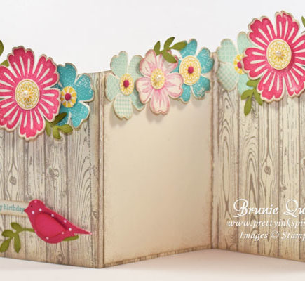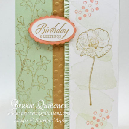 Here’s another card using the Hardwood Background stamp that I made for my sister who celebrated her birthday last week. I believe she really liked it! May is a popular month in my family with birthdays, anniversaries, and Mother’s Day – many cards to make! I stamped the card stock with Crumb Cake ink on a 5-1/2″ x 12″ Very Vanilla card stock and scored at …