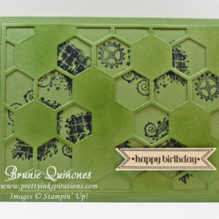 This is a quick and easy masculine card using the Clockworks Stamp (retiring soon!) and the Hexagon Hive Thinlits. Just stamp randomly and then adhere the hexagon thinlit on top, sponge, and add a sentiment and you’re done! I needed to make this quick card while I was in my world of craziness a few weeks ago. Here are 2 cards that I made a …