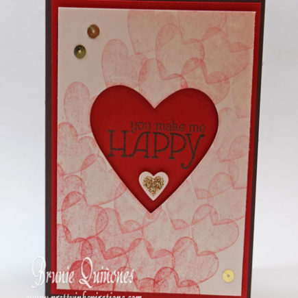Here’s the other Valentine’s Day card using the Bokeh Technique in a different way – this time using hearts. So sorry for the delay. Here’s the scoop on what I did . . . I cut out the center heart with the Hearts Framelits and then embossed the sentiment with Early Espresso Embossing Powder. For the small heart I applied some heat and stick …