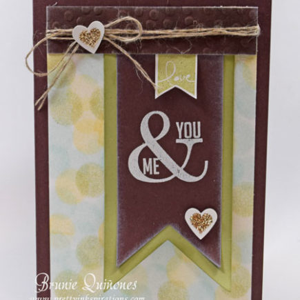 Here’s a non-traditional color for a Valentine’s Day card. On this card, I used the Perfect Pennant Bundle (Perfect Pennants stamp & Banners Framelits) as well as Sponge Daubers to create the Bokeh technique effect. I’ll be teaching this technique to my stamping club this week. I used the Decorative Dots Embossing Folder and Banner Blast Stamp Set which is FREE to anyone who purchases $50 …