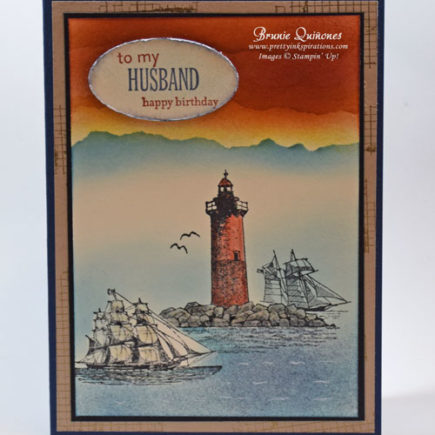 Here’s a card I made for my husband using The Open Sea stamp, and a couple of other retired stamps in my stash. I know he likes the sea and boats so I decided to make one with a nautical theme. I used the faux layer and masking technique. I also embossed the Off the Grid stamp on the Crumb Cake card stock layer with …